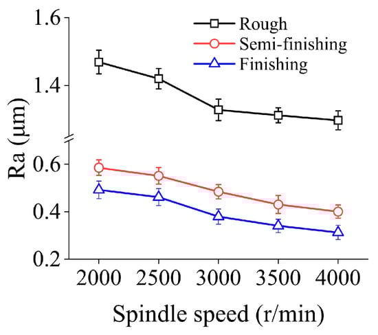 3.1. Effects of Spindle Speed on Surface Quality in Different Machining Stages