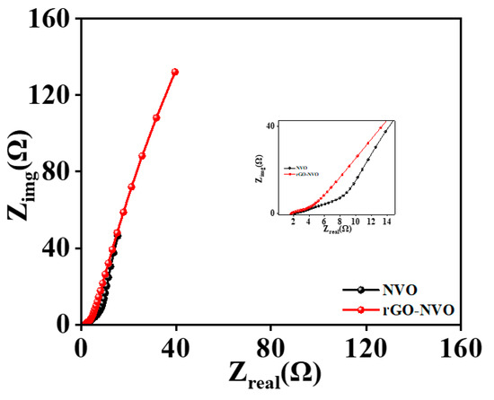 Electrochemical impedance spectra of Ni3V2O8 and Ni3V2O8-rGO electrode.