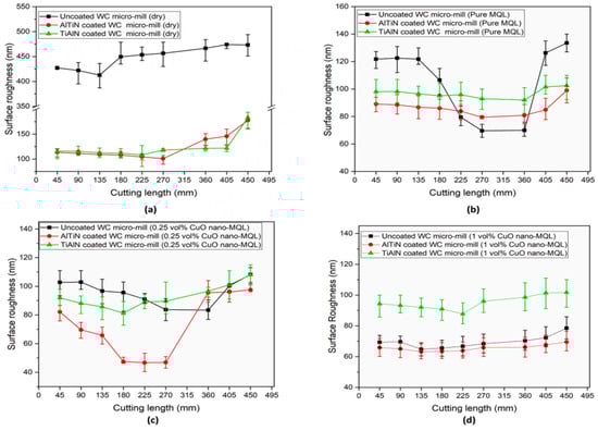 - Roushan, A.; Rao, U.S.; Patra, K.; Sahoo, P. Performance evaluation of tool coatings and nanofluid MQL on the micro-machinability of Ti-6Al-4V. J. Manuf. Process. 2022, 73, 595–610. [Google Scholar] [CrossRef]