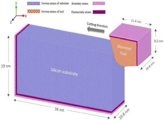 - Wang, J.; Zhang, X.; Fang, F.; Chen, R. A numerical study on the material removal and phase transformation in the nanometric cutting of silicon. Appl. Surf. Sci. 2018, 455, 608–615. [Google Scholar] [CrossRef]