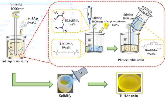 2.2. Preparation of the Ti-HAp Photocured Composite Resin
