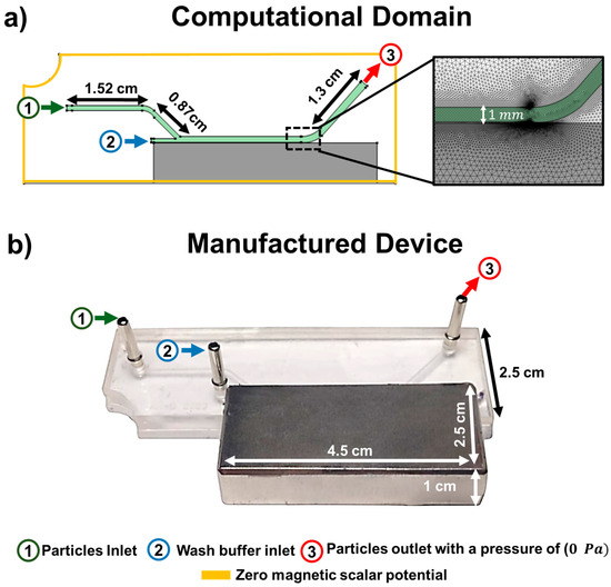 - Gusenbauer, M.; Schrefl, T. Simulation of Magnetic Particles in Microfluidic Channels. J. Magn. Magn. Mater. 2018, 446, 185–191. [Google Scholar] [CrossRef]