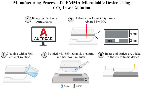 - Rodríguez, C.F.; Báez-Suárez, M.; Muñoz-Camargo, C.; Reyes, L.H.; Osma, J.F.; Cruz, J.C. Zweifach–Fung Microfluidic Device for Efficient Microparticle Separation: Cost-Effective Fabrication Using CO2 Laser-Ablated PMMA. Micromachines 2024, 15, 932. [Google Scholar] [CrossRef] [PubMed]
