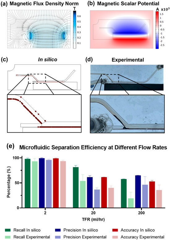 - Strayer, J.; Choe, H.; Wu, X.; Weigand, M.; Gómez-Pastora, J.; Zborowski, M.; Chalmers, J.J. Measuring Magnetic Force Field Distributions in Microfluidic Devices: Experimental and Numerical Approaches. Electrophoresis 2023, 45, 743–751. [Google Scholar] [CrossRef]