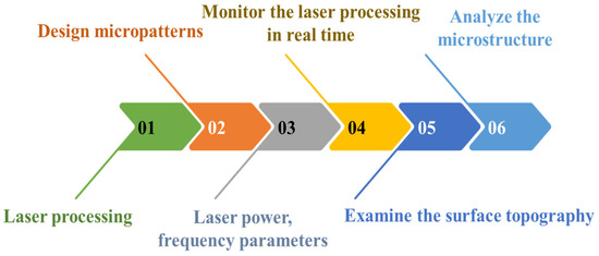 Furthermore, the LED modules’ low light extraction efficiency (LEE) has been an important issue. This is due to the total internal reflection (TIR) effect [11] on the top encapsulation surface of traditional modules, which reduces light emission and leads to the conversion of captured light rays into heat. Researchers have recently developed various methods to reduce TIR and enhance LEE. These include nano-/micro-scale surface structures [12], microlens arrays [13], and precision mechanical engraving structures [14]. However, nano-/micro-scale approaches may be costly. The microlens arrays may also suffer from optical dispersion and material issues, affecting uniformity and causing damage, while precision mechanical engraving is limited to millimeter-scale sizes due to equipment constraints. The laser engraving approach is a promising technology for creating microstructures on ceramic phosphor plates without contact or chemical agents to achieve high accuracy, small dimensions, and the ability to shape and pattern as desired. In laser engraving, the pulsed picosecond lasers enable the adjustment of processing depth through power modulation and the processing area through beam diameter adjustment, to create intricate patterns.