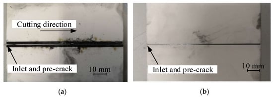 Figure 13 show a comparison between the experimental and simulation results of the crack-propagation trajectory under a surface heat source. It shows that the degree of offset generated in experiments and simulations is relatively close. Therefore, the simulation of crack propagation in this study is suitable for discussing the cutting quality.