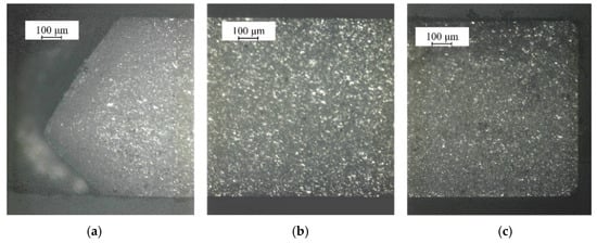 Figure 8 show the fracture surface of cutting Al2O3 ceramic plates at a microwave power of 1000 W and a scanning speed of 3 mm/s. As is shown, there is obvious processing damage at the entrance due to the process of prefabricating cracks using a diamond wire saw. It is notable that the fracture quality of the middle and outlet sections is better than that at the entrance, and the middle section is the best. There is a small amount of edge damage at the outlet.