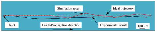 Comparison of experimental and simulation results of the initial crack-propagation trajectory.