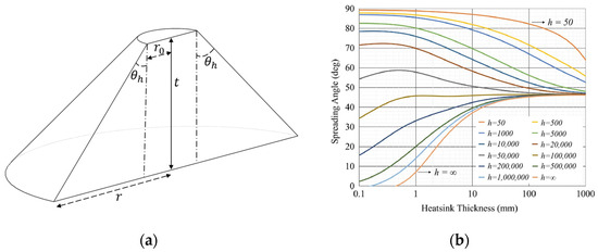 Figure 1. Heat conduction direction. (a) Schematic diagram of heat flow conduction in heat sinks at a fixed angle. (b) the study of heat diffusion angle [20].