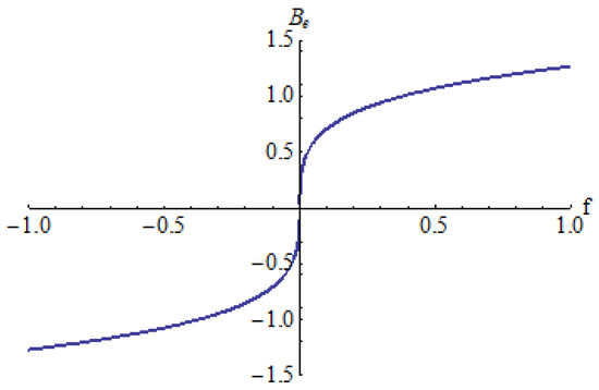 It can be seen that there is a single equilibrium point Be in every case, except in situations where there are two equilibrium points Be in a small neighborhood of f = 0 for a = 0.5 and b = 1 (Figure 4).