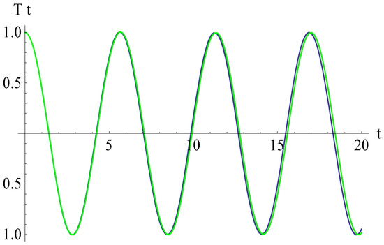 To validate the obtained analytical solution, the analytical results are compared with numerical integration results obtained by means of a fourth-order Runge–Kutta approach. The explicit analytical solution benefits from the optimal values identified for the convergence-control parameters and is plotted in Figure 2, demonstrating the high accuracy of the employed method. In Figure 2, we present the approximate solution (54) in comparison with the numerical integration results. It can be observed that the error between the approximate analytical solution obtained by the OHAM and the solution obtained by numerical integration is very small, these solutions being in an excellent agreement. In this way, the results obtained by the OHAM are validated through this comparison, and an excellent accuracy of the analytical solution is proved.