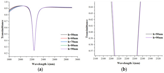 (a) Transmission spectra for different lengths h; (b) detail view at (+ )/2.