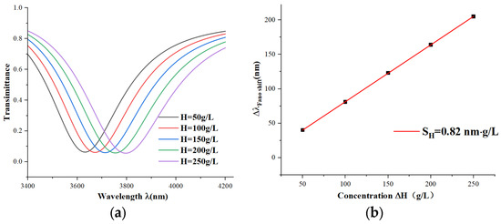 (a) Transmission spectra of different concentrations of H; (b) sensitivity fit curves for different hemoglobin concentrations.