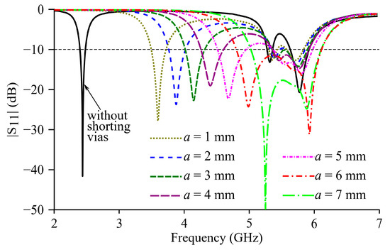 Figure 4. Simulated |S11| curves of Ant II with different values of a.