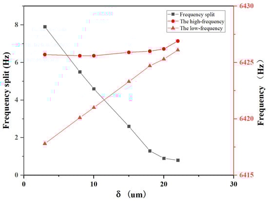 between the theoretically equal two spindle oscillation frequencies. The wineglass mode frequency split can cause gyroscope bias drift and increased mechanical thermal noise, severely affecting the bias stability of the gyroscope [