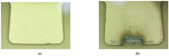Figure 17, reveals significant differences. Laser ablation trimming causes greater damage to the resonator and results in substantial dust contamination. In contrast, chemical etching trimming causes far less damage and has no dust contamination issues. The only drawback is a slight increase in surface roughness due to uneven corrosion from etching solution bubbles.