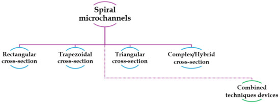 - Ramya, S.; Kumar, S.P.; Ram, G.D.; Lingaraja, D. A Short Review of Spiral Microfluidic Devices with Distinct Cross-Sectional Geometries. Microfluid Nanofluidics 2022, 26, 95. [Google Scholar] [CrossRef]