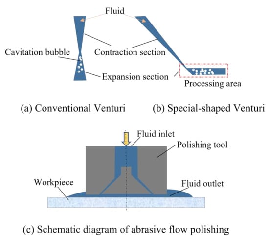 (a–c) Special-shaped Venturi cavitation abrasive flow polishing structure.