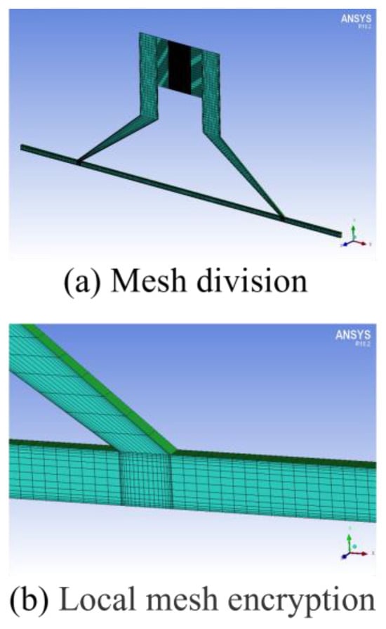 Meshing of ANSYS 2018 R1 was used to mesh the model structurally. The meshing was further refined in the possible cavitation regions to obtain a more accurate cavitation state, as shown in Figure 3. To ascertain mesh independence, the model’s mesh was refined to 15,812 elements for computational analysis. The results indicated that the discrepancies in each parameter, pre- and post-mesh refinement, were below 0.3%, thereby confirming that the mesh density satisfied the computational accuracy requirements. The orthogonal test, a pragmatic methodology for identifying optimal solutions, was subsequently applied. In light of the workpiece’s dimensions, the orthogonal test was conducted on three numerical simulation parameters, each at five levels, as detailed in Table 2.