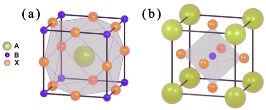Schematic diagram of perovskite’s structure: (a) coordination number is 12; (b) coordination number is 6.