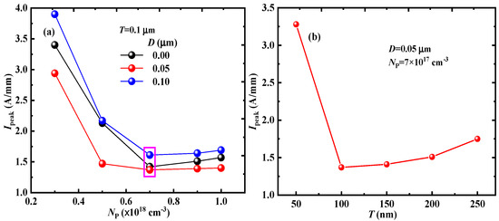 (a) Optimized D and Np and (b) T and corresponding Ipeak.