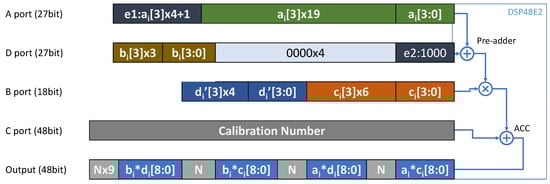 - Sommer, J.; Özkan, M.A.; Keszocze, O.; Teich, J. Dsp-packing: Squeezing low-precision arithmetic into fpga dsp blocks. In Proceedings of the 2022 32nd International Conference on Field-Programmable Logic and Applications (FPL), Belfast, UK, 29 August–2 September 2022; pp. 160–166. [Google Scholar]