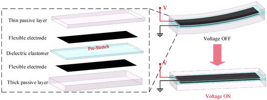 - Godaba, H.; Foo, C.C.; Zhang, Z.Q.; Khoo, B.C.; Zhu, J. Giant voltage-induced deformation of a dielectric elastomer under a constant pressure. Appl. Phys. Lett. 2014, 105, 112901. [Google Scholar] [CrossRef]