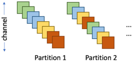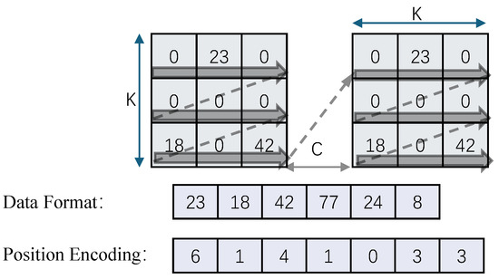 As shown in Figure 14, the weights are divided into groups (banks) according to the encoding method. Each group has non-zero element weights. To match the hardware, we group the non-zero elements and align them with . If they are insufficient, fill them with 0. Then the size of each kernel is: