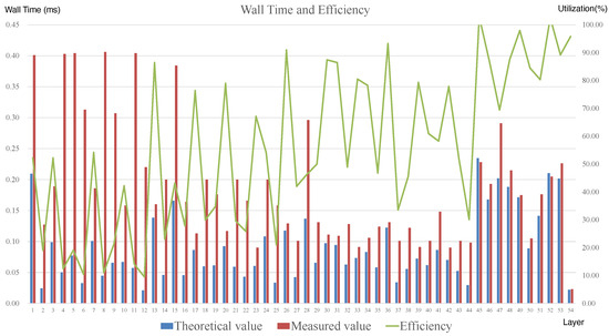 We can obtain the theoretical execution time and throughput per layer by evaluating the model in Section 4.2.1 and the sparsity level after pruning. Subsequently, obtaining the execution time of each layer of the gas pedal execution in the experiments will allow us to build the Roofline Model shown in Figure 20, as well as the efficiency analysis in Figure 21.