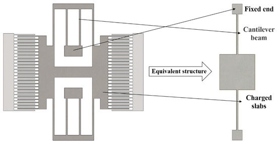 The movable part structure of the device is fixedly connected by four folding beams, which can be regarded as the structure of an intermediate mass connected by a cantilever beam. The complex structure of the device is simplified, and the simple detection structure is designed. The equivalent structure is shown in Figure 4. The design is simple and the structural dimensions of the double-end fixed cantilever beam are shown in Table 1.
