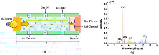 19]. Many gases absorb specific wavelengths of infrared light, and the gas concentration can be calculated by measuring how much light is absorbed at these wavelengths by using the Lambert–Beer Law. The commonly used wavelength for CO