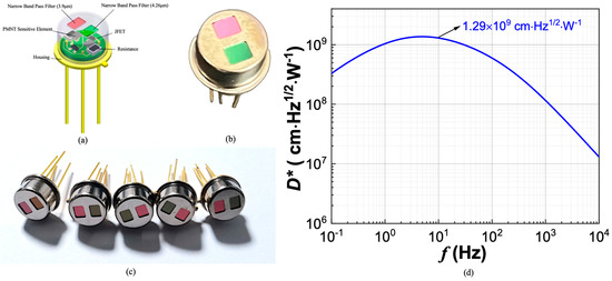 A narrow-band filter with a center wavelength of 4.26 μm and a half-peak width of 180 nm was equipped on the cap as a CO