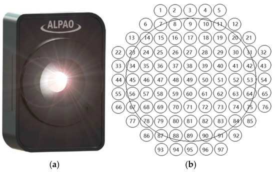 The 97-element MEMS DM, where (a) is for physical DM and (b) is for spatial distribution of the actuators.