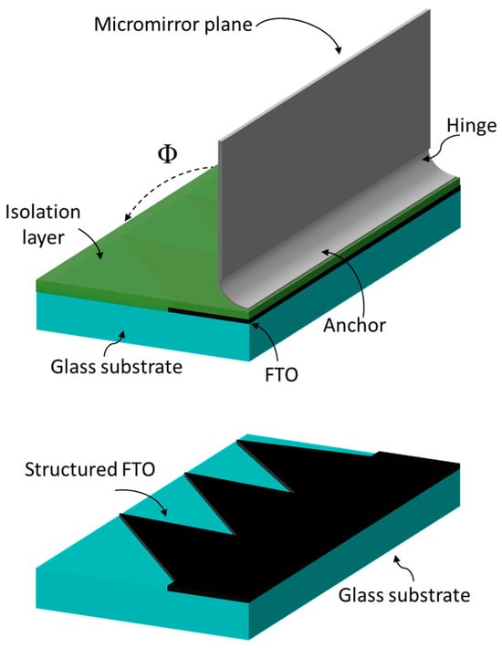 Schematic representation of micromirror configuration with isolation layer and laterally structured FTO.