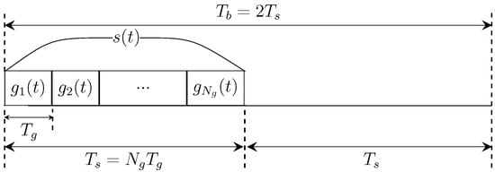 Designing a preamble signal involves determining how to distribute the preamble energy, , across each by selecting and the corresponding to satisfy []. The goal is to ensure that each element of closely approximates the ideal synchronization point, . This occurs when the energy output of the first integrator, starting near the signal’s beginning, reaches its maximum value. For simplicity, we assume that the period of each sub-window is an integer multiple of , such that , and is a multiple of slot duration, i.e., , where m and L are integers. Additionally, all pulses are constrained to have equal energy. Each pulse in the preamble, , where , is defined as []
