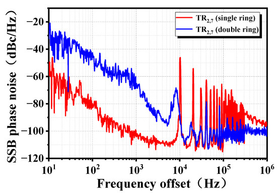 Figure 9. SSB phase noise measurement results of TR2,7 mode microwave photonic signals in single ring and double ring cavities, respectively.