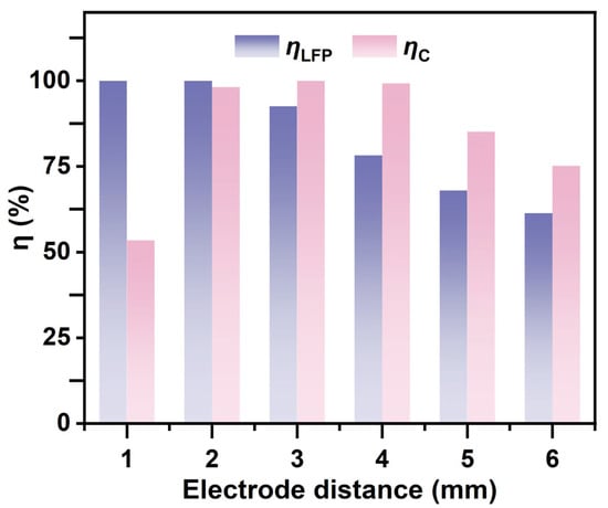 Separation efficiencies of LFP and graphite under different electrode spacings (with B = 2.4 T, = 200 V, u = 30 mm/s, and f = 1 kHz).