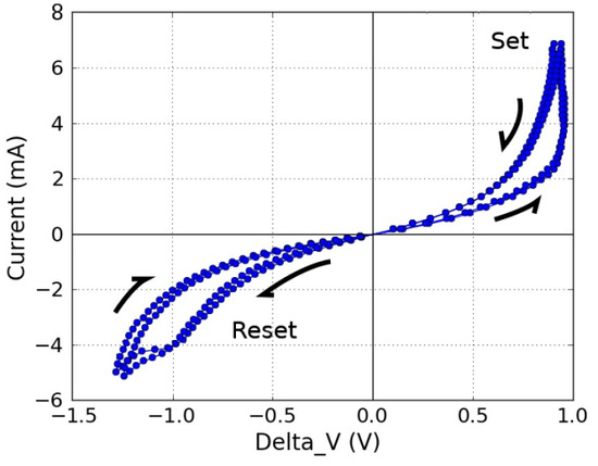 4. Waser, R.; Aono, M. Nanoionics-based resistive switching memories. Nature 2007, 6, 833–840. [Google Scholar] [CrossRef]