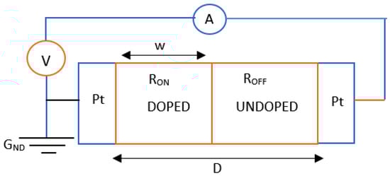28. Strukov, D.B.; Snider, G.S.; Stewart, D.R.; Williams, R.S. The missing memristor found. Nature 2008, 453, 80–83. [Google Scholar] [CrossRef]