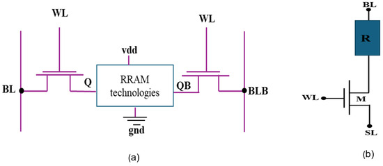 Figure 8. (a) Conventional 6T SRAM cell structure [10] (b) Proposed 1T2R RRAM-based structure.