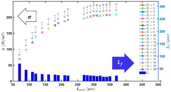 | Larm [μm] | (Nf, Lf) [1, μm] | σ Range |