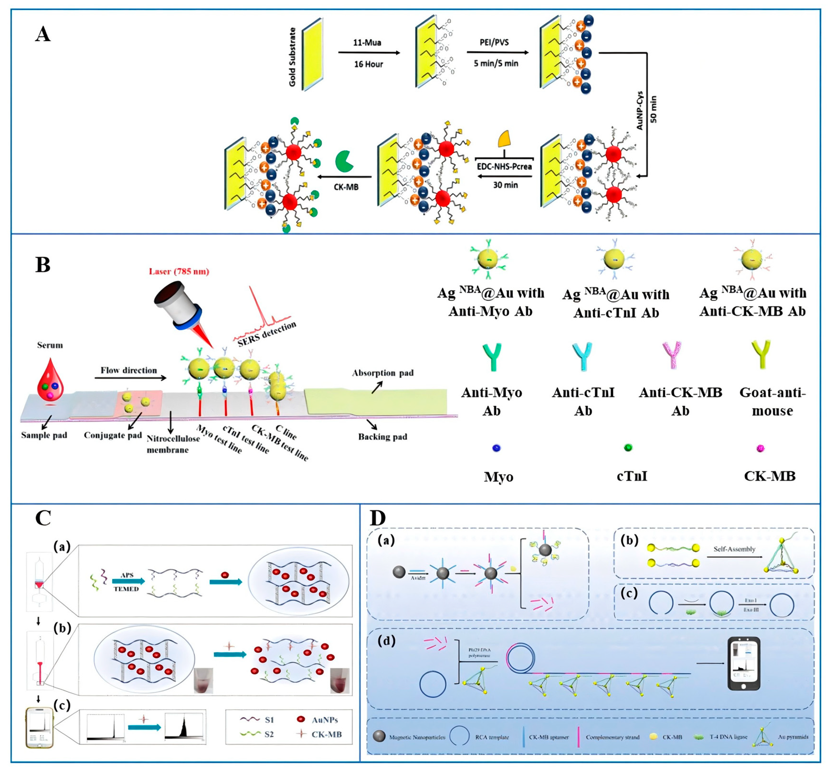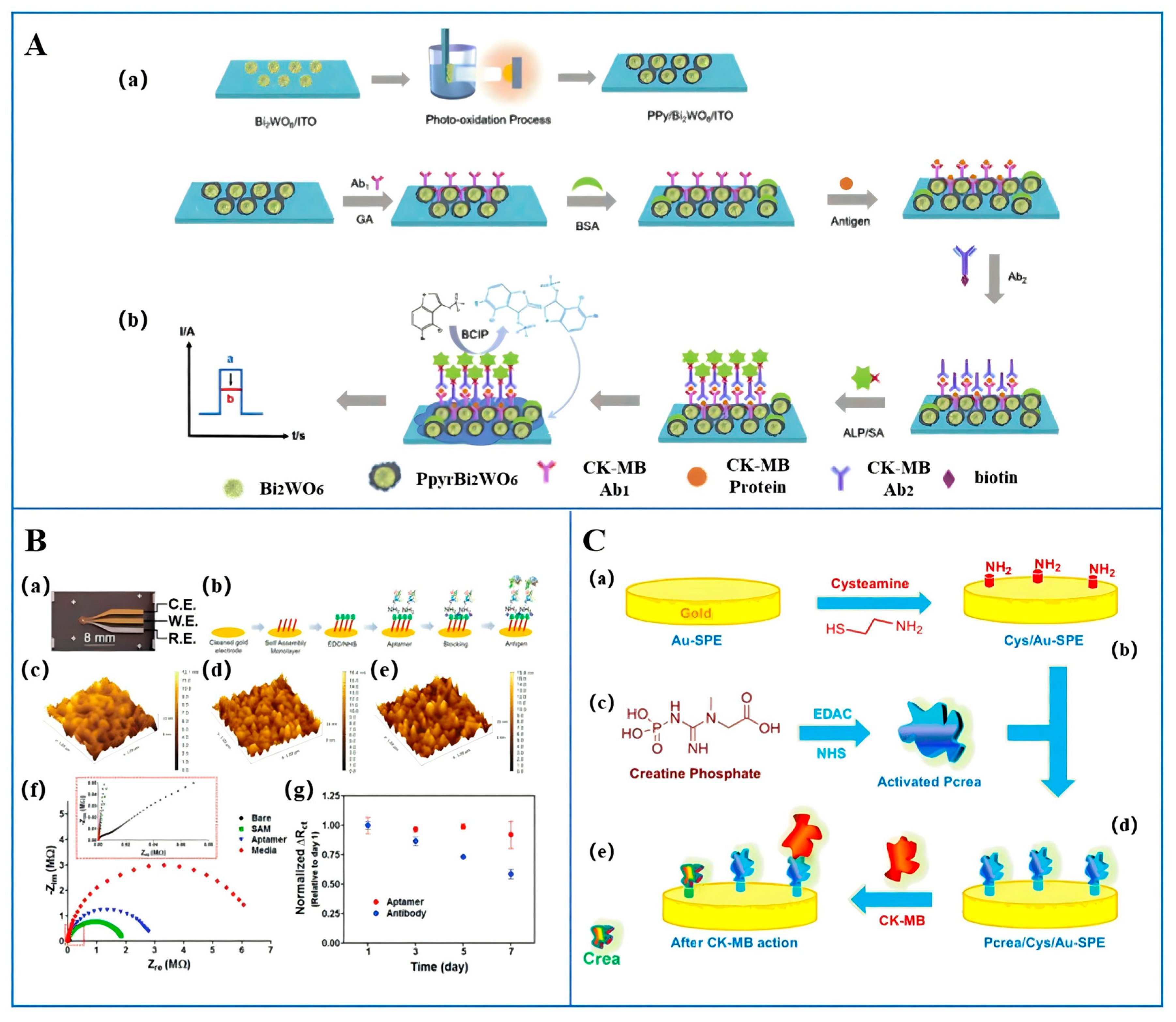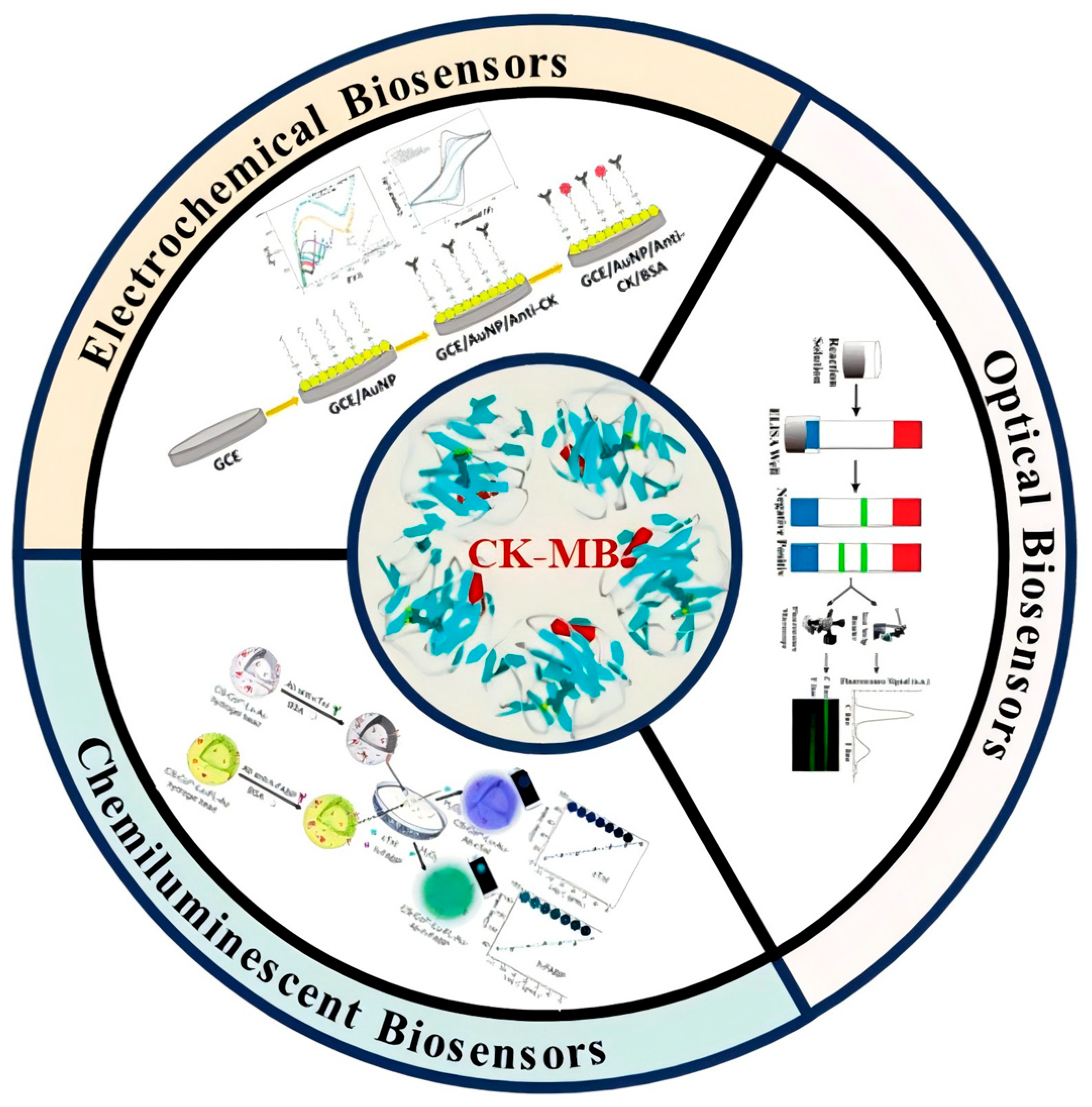 - Zhong, T.; Jiang, Z.; Xing, Y.; Jiang, S.; Wu, Y.; Yao, S. Electrochemical immunosensor based on gold nanoparticles for the detection of creatine kinase as a cardiac marker. Int. J. Electrochem. Sci. 2024, 19, 100821. [Google Scholar] [CrossRef]