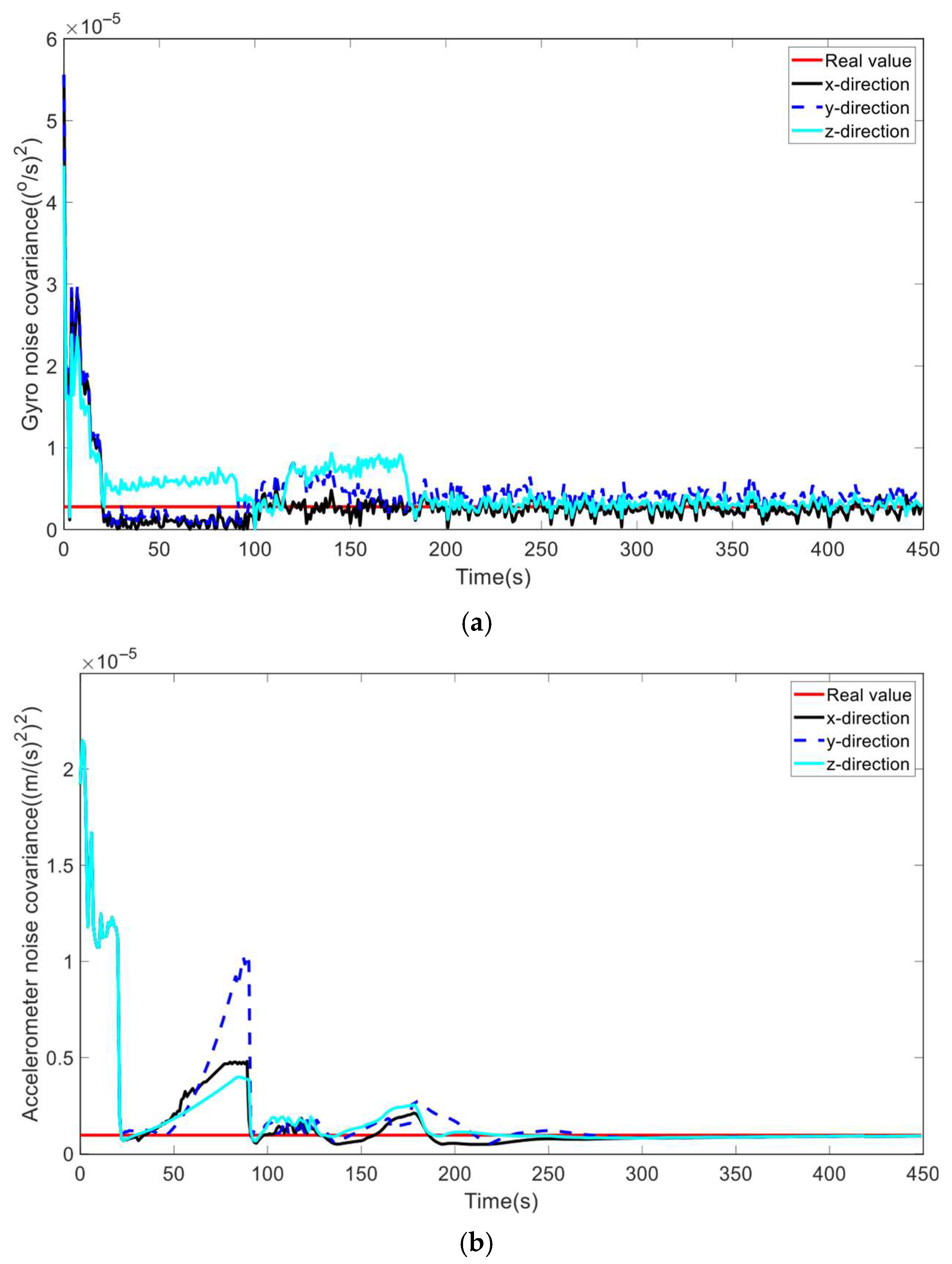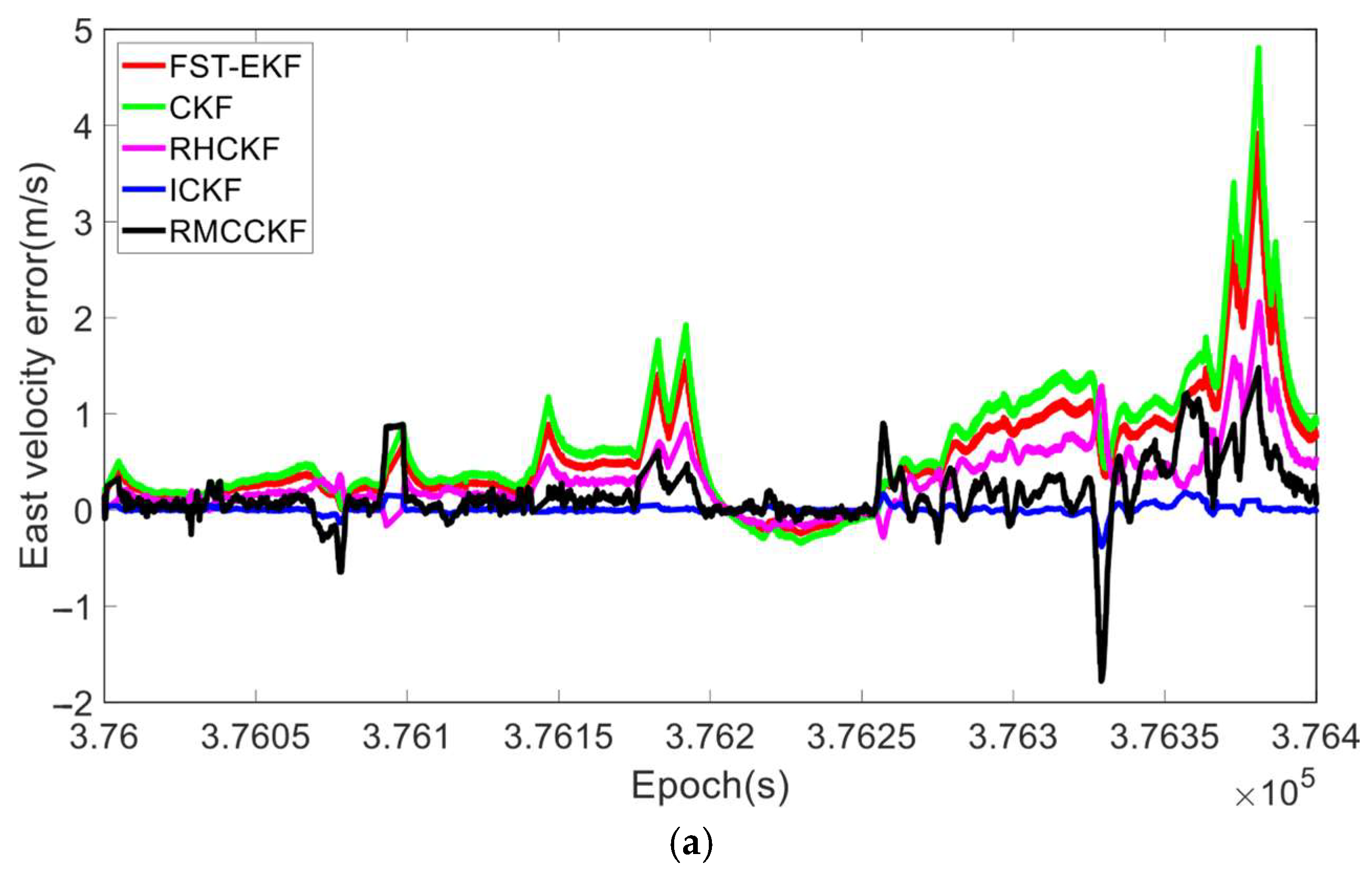 - Liu, Y.H.; Ning, X.L.; Li, J.L.; Ye, W.; Wang, B.; Ma, X. Adaptive central difference Kalman filter with unknown measurement noise covariance and its application to airborne POS. IEEE Sens. J. 2021, 21, 9927–9936. [Google Scholar] [CrossRef]
