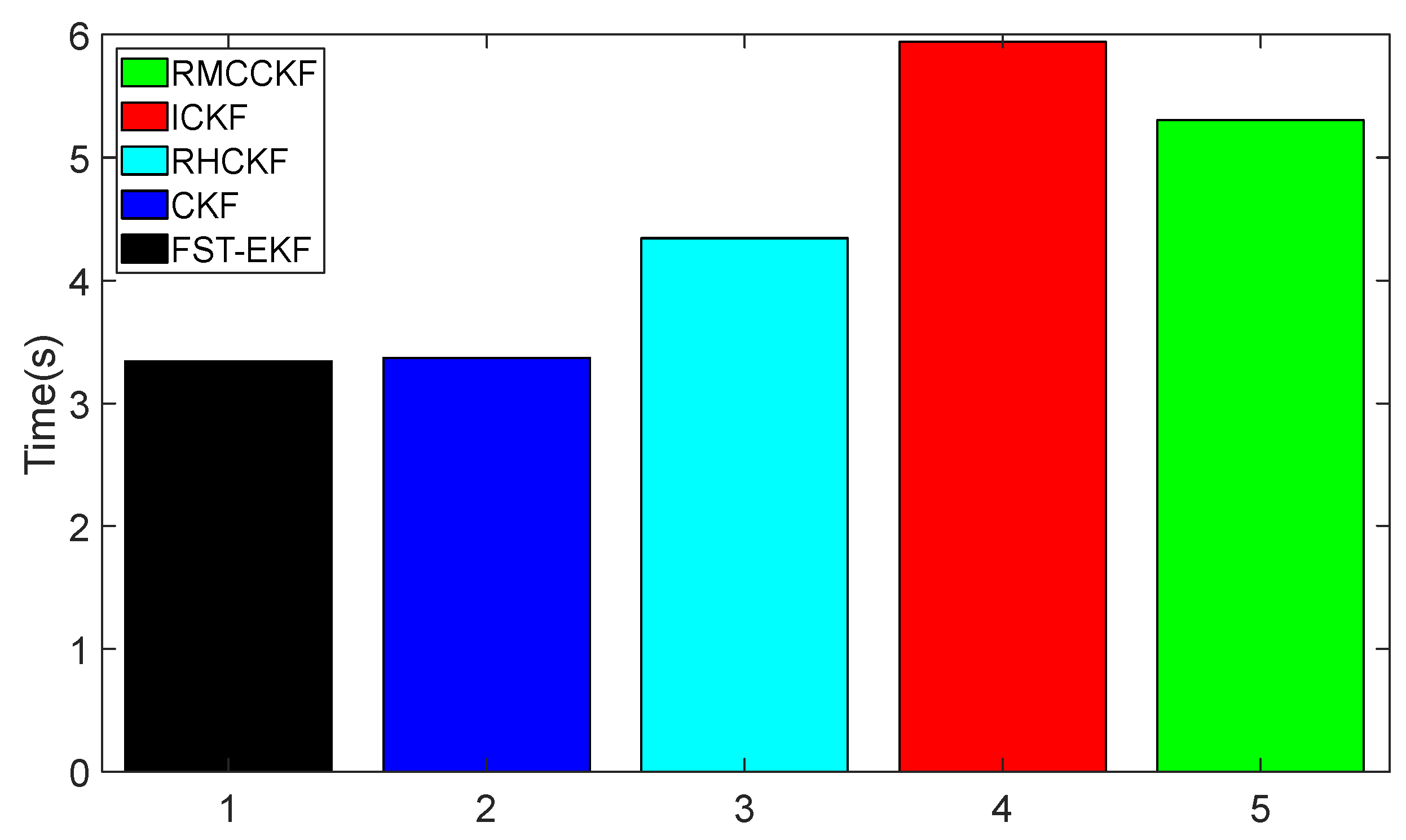 - Wang, G.W.; Cui, B.B.; Tang, C.Y. Robust cubature Kalman filter based on maximum correntropy and resampling-free sigma-point update framework. Digital Signal Process. 2022, 126, 103495. [Google Scholar] [CrossRef]