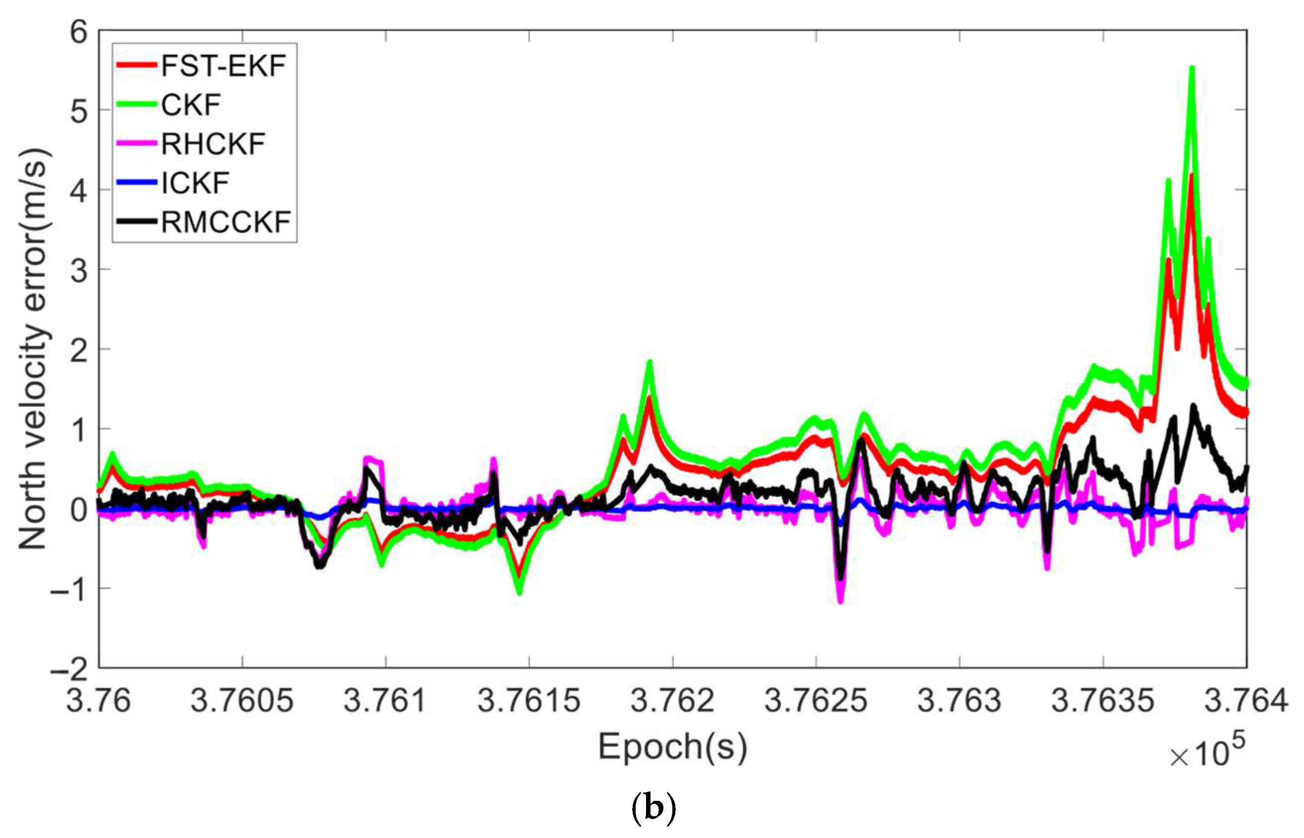 - Chen, Z.H.; Liu, Y.X.; Liu, S.G.; Wang, S.L.; Yang, L. An improved fading factor-based adaptive robust filtering algorithm for SINS/GNSS integration with dynamic disturbance suppression. Remote Sens. 2025, 17, 1449. [Google Scholar] [CrossRef]