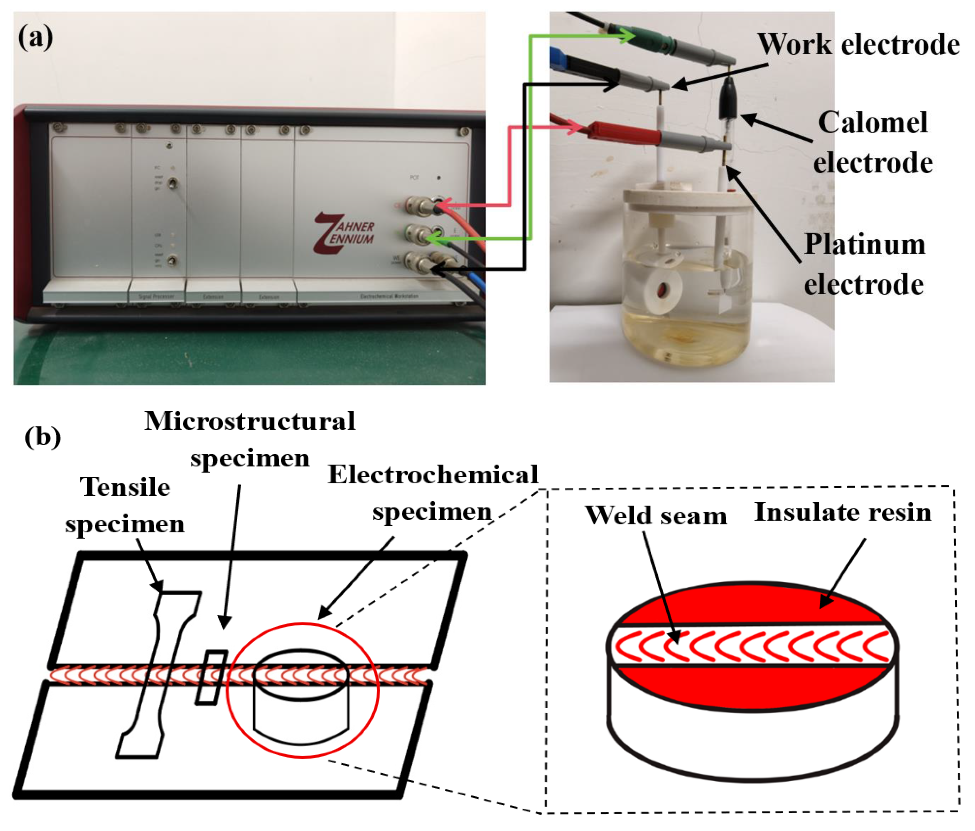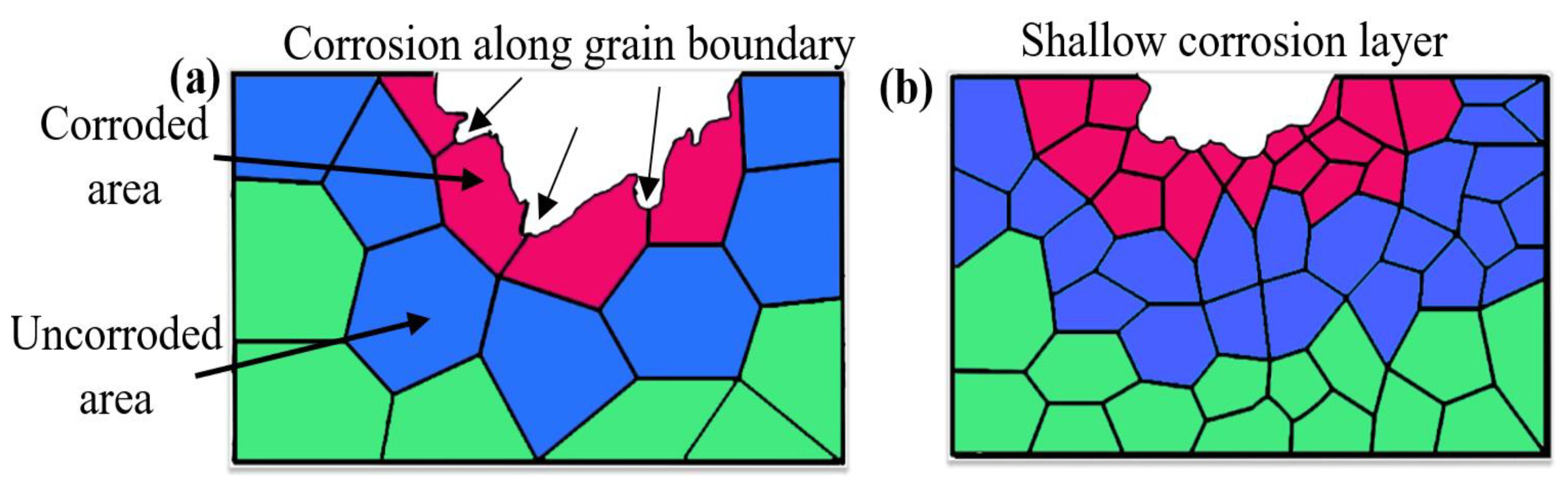 - Yang, C.; Guo, W.M.; Zhang, H.X.; Qiu, R.; Hou, J.; Fu, Y.B. Study on the corrosion behavior of 7A52 Al alloy welded joint by electrochemical method. Int. J. Electrochem. Sci. 2023, 8, 9308–9316. [Google Scholar] [CrossRef]