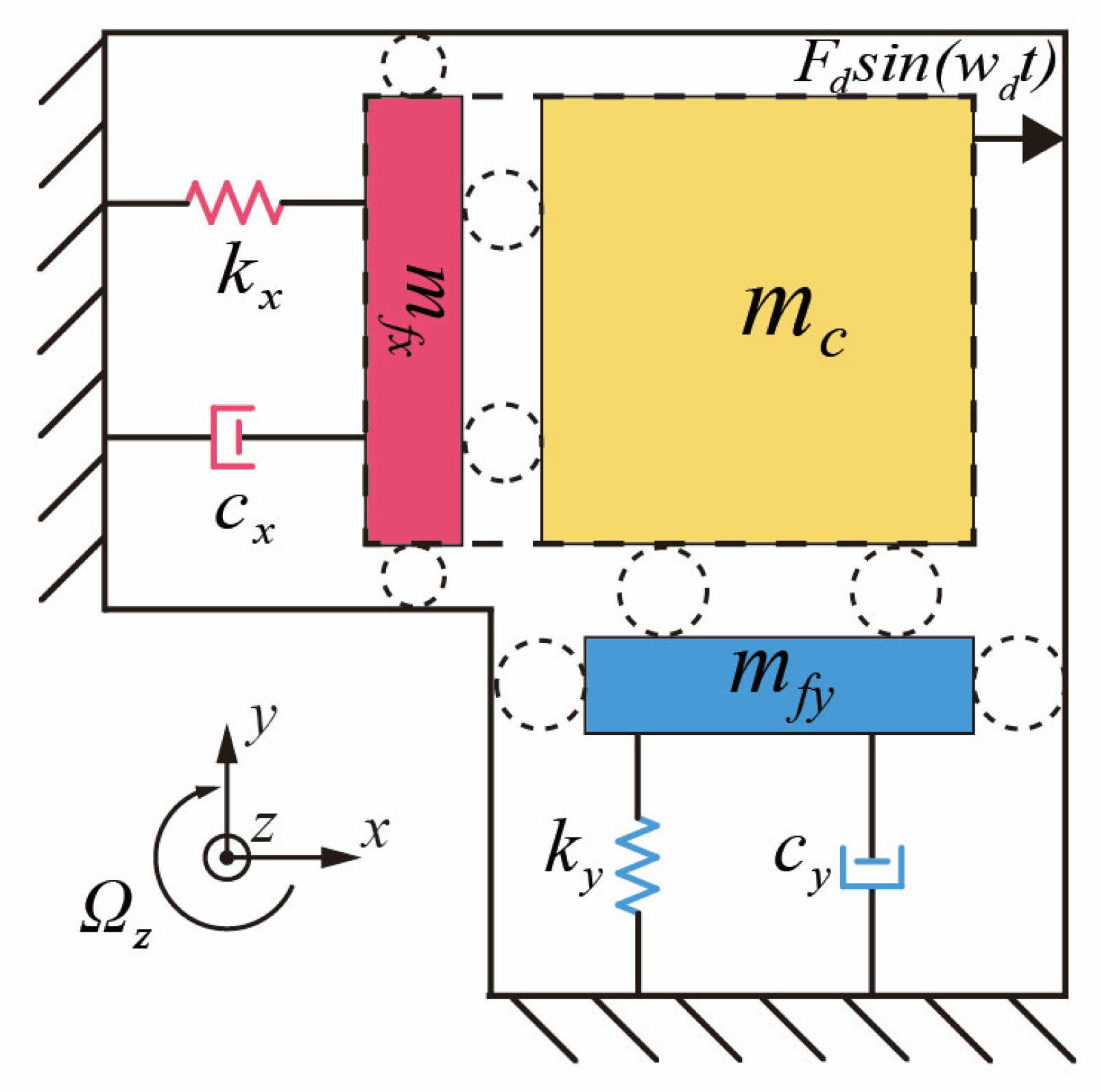 13]. According to Newton’s second law, simplified dynamics equations for the drive mode and sense mode of the MEMS gyroscope are obtained as follows [