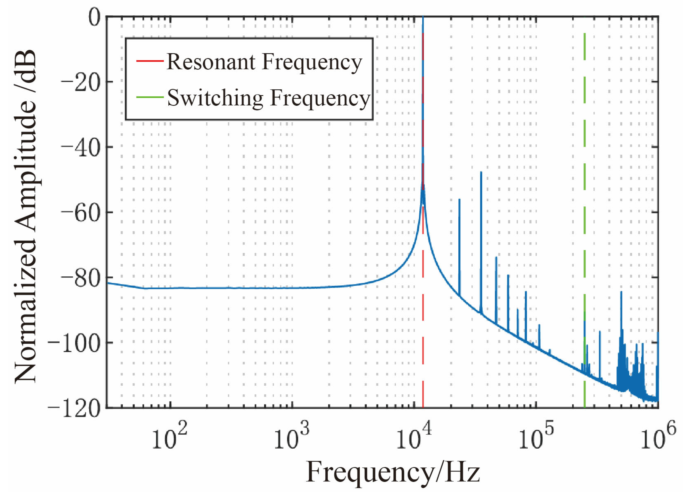 Figure 11. The results indicate that high-frequency components are negligible, confirming the elimination of feedthrough interference and retention of the drive-mode signal.