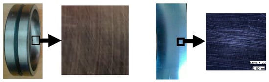 After processing with 10,000-mesh cubic boron nitride abrasives, the surface texture of the bearing ring channels was observed with the VHX-600E ultra-depth-of-field 3D microscope. It was found that the channel surface texture had become further chaotic based on the initial ultra-precision ground texture. After processing with 18,000-mesh cubic boron nitride abrasives, the surface roughness of the bearing channels was measured to reach approximately 0.019 µm, representing a significant improvement compared to the surface roughness of 0.032 µm measured before the experiment. The surface and texture of the bearing raceway before and after abrasive flow machining are shown as Figure 4.
