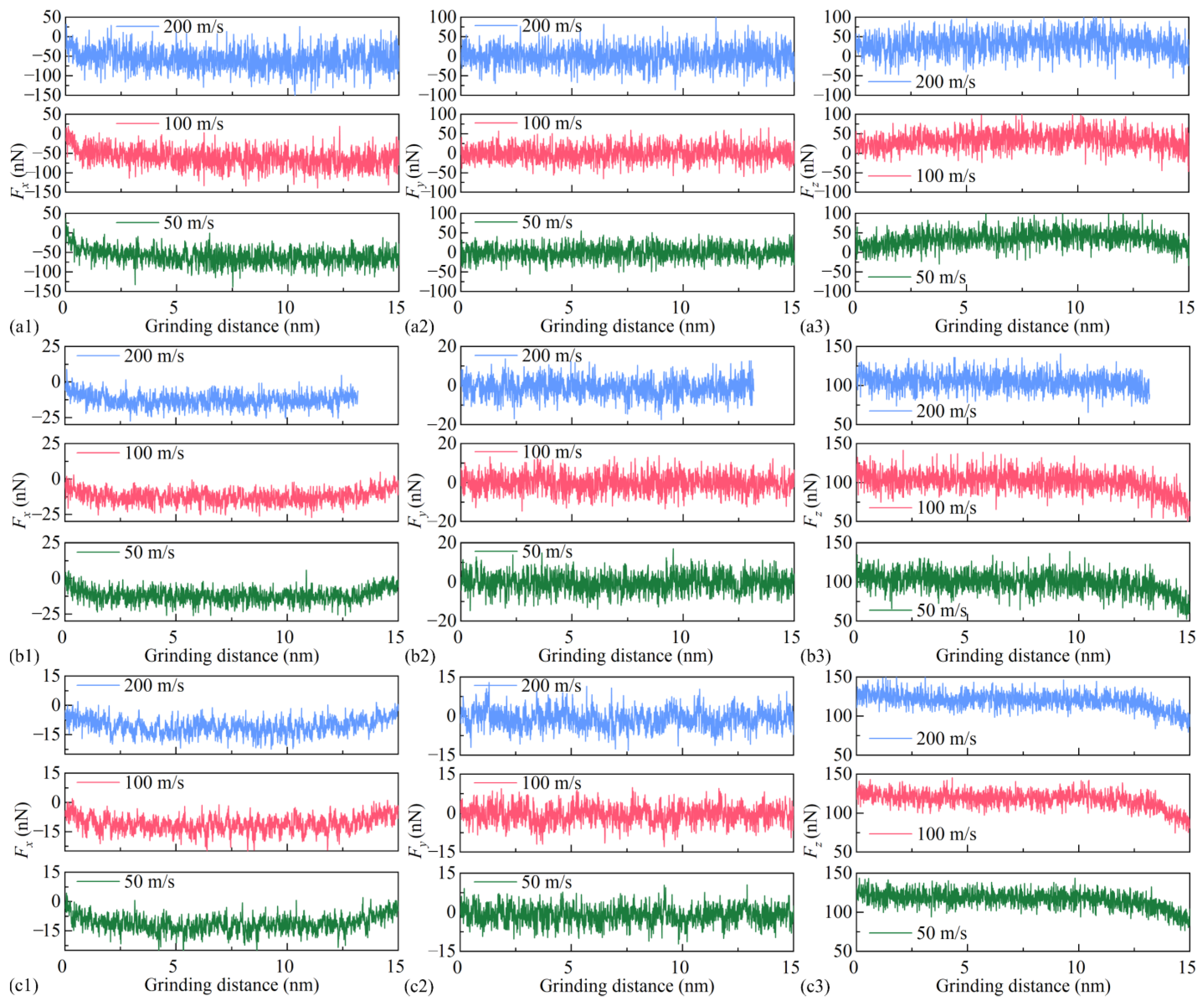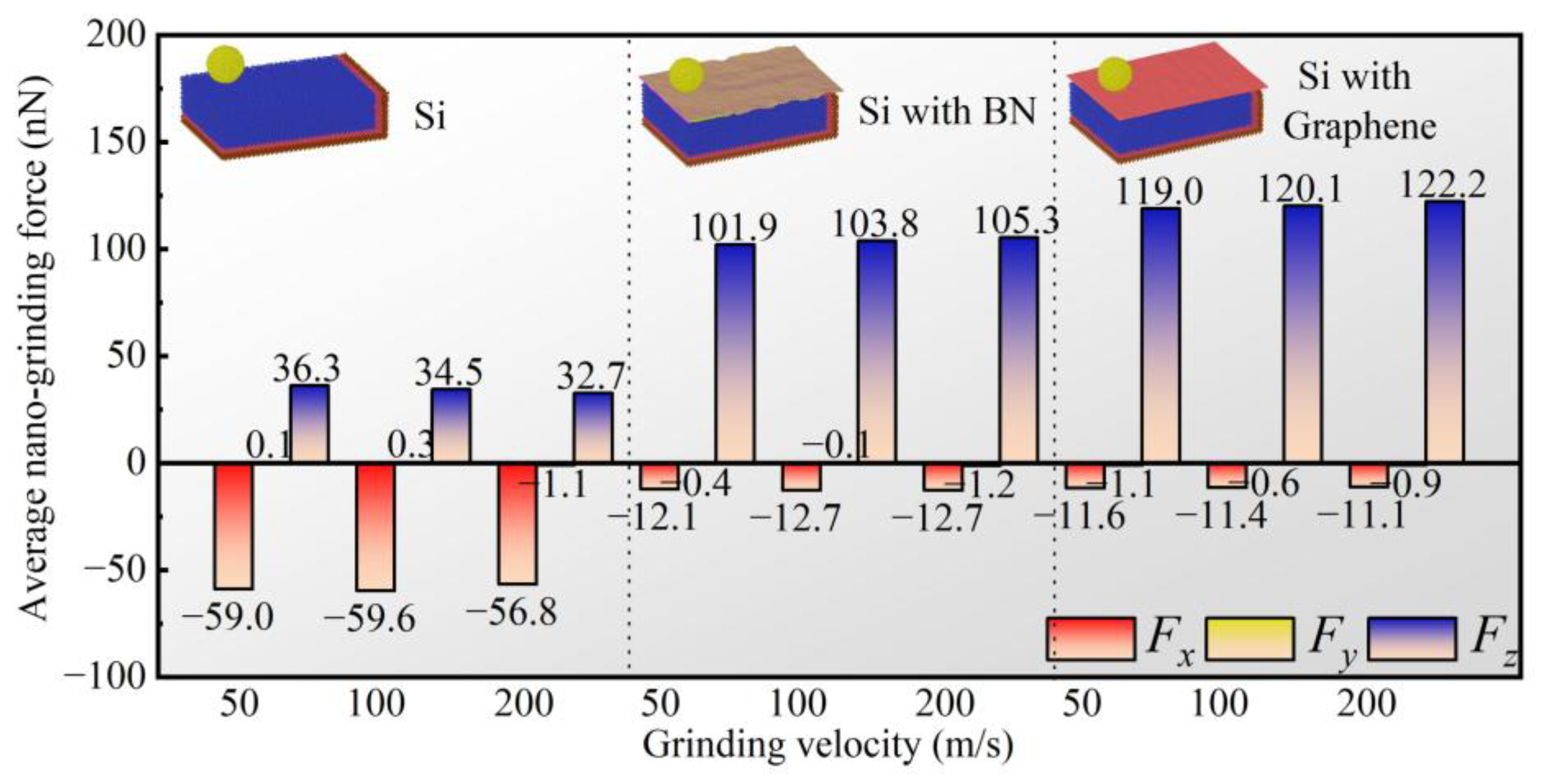 Nano-grinding speed (m/s) | 50, 100, 200 |